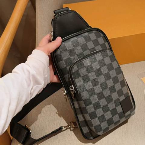 디자이너 VIP 카탈로그 코팅 캔버스 가죽 패치 워크 크로스 바디 백 남자의 블랙 다크 브라운 가슴 어깨 애비뉴 슬링 백